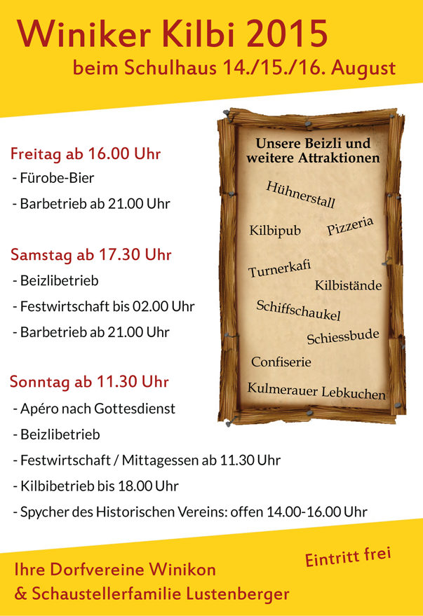 Nach einem intensiven ersten Halbjahr befinden wir uns nun in der wohlverdienten Sommerpause. Bilder von unserem Waldhof Openair gibt es in der Foto Gallerie. Nächster Termin für die Agenda ist der 14./15./16. August 2015 an der Kilbi in Winikon.